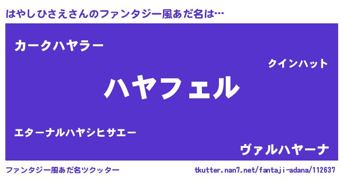 | ヒーロー風カッコイイあだ名 | 『スーパーハヤシヒサエ』『仮面ハヤダー』 |