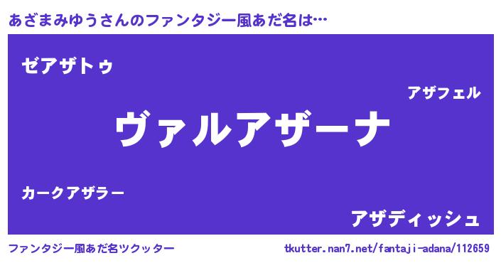 | 男性向けラノベタイトル風あだ名 | 『魔弾の王とあざまみゆう』 |
