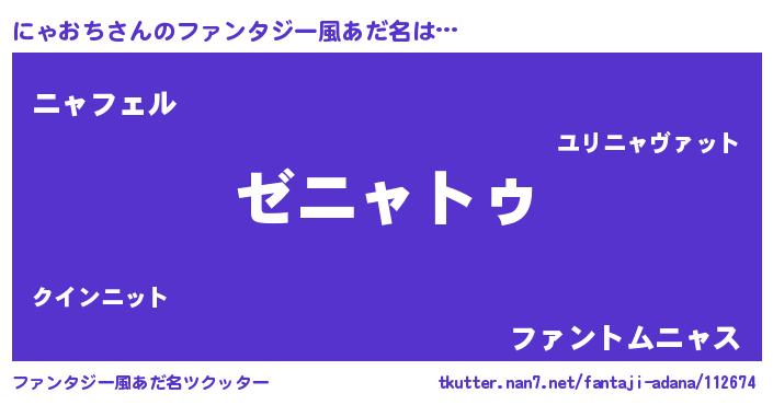 | 女子向けラノベタイトル風あだ名 | 『にゃおちなんてお断りですっ。』 |