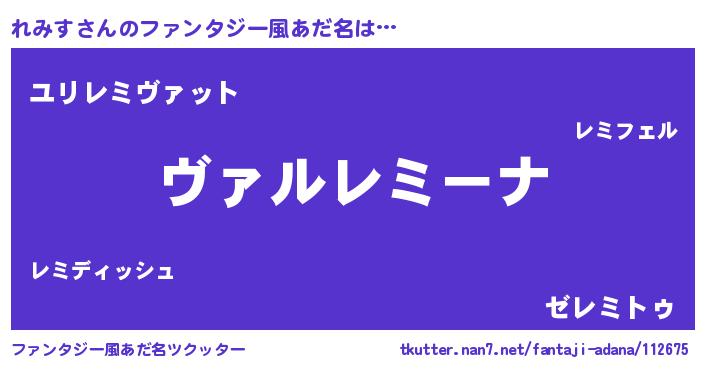 | 男性向けラノベタイトル風あだ名 | 『この素晴らしい世界にれみすを!』 |