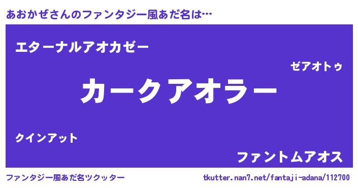 | ヒーロー風カッコイイあだ名 | 『ウルトラあおかぜマン』『銀牙騎士アオ』 |