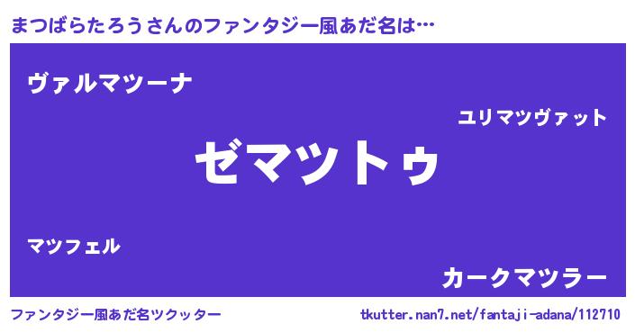 | 男性向けラノベタイトル風あだ名 | 『Re:まつばらたろうから始める異世界生活』 |