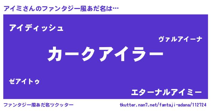 | 男性向けラノベタイトル風あだ名 | 『うちのアイミが世界を掌握している!』 |