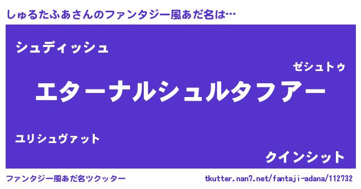 | 女子向けラノベタイトル風あだ名 | 『しゅるたふあの婚約者』 |