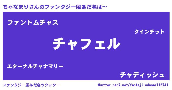 | ヒーロー風カッコイイあだ名 | 『スーパーチャナマリ』『魔戒騎士チャ』 |