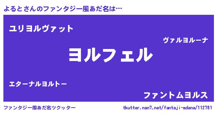 | 男性向けラノベタイトル風あだ名 | 『ヨルトアートオンライン』 |