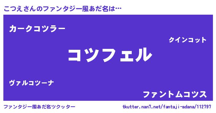 | 男性向けラノベタイトル風あだ名 | 『こつえの憂鬱』『はたらくこつえさま!』 |