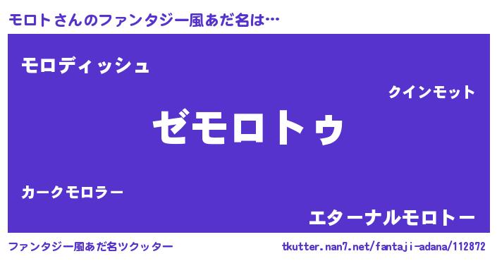 | 男性向けラノベタイトル風あだ名 | 『Re:モロトから始める異世界生活』 |