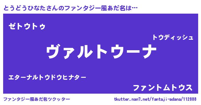 | 男性向けラノベタイトル風あだ名 | 『魔弾の王ととうどうひなた』 |