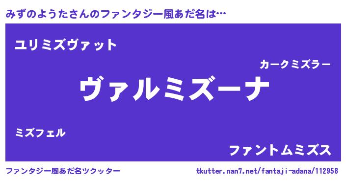 | 男性向けラノベタイトル風あだ名 | 『この素晴らしい世界にみずのようたを!』 |