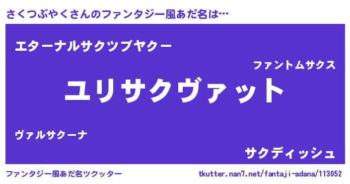 | 男性向けラノベタイトル風あだ名 | 『サクツブヤクスレイヤー』 |