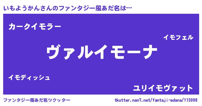 | 男性向けラノベタイトル風あだ名 | 『魔弾の王といもようかん』 |