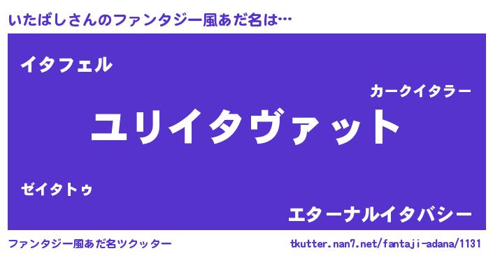 | 男性向けラノベタイトル風あだ名 | 『いたばし~年齢イコール彼女いない歴の魔法使い~』 |