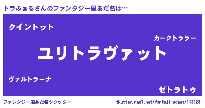 | 男性向けラノベタイトル風あだ名 | 『トラファルスレイヤー』 |