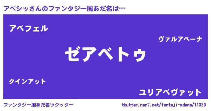 | 意味不明あだ名 | 『自称アベシッ』『ペロリンアベシッ』 |