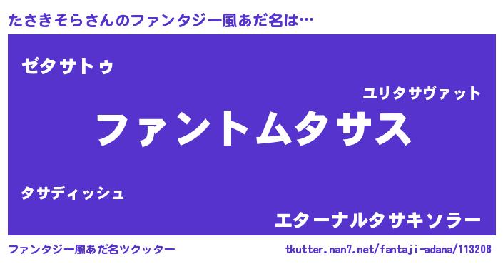 | ポケモン風あだ名 | 『ヒタサキソラ』『タサセウス』 |