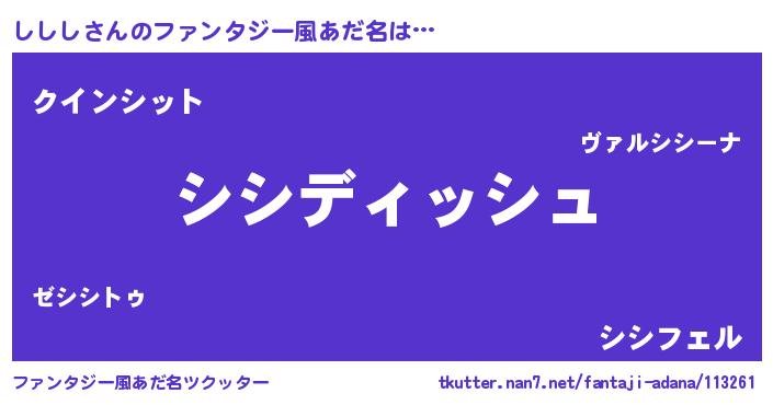 | ヘコむあだ名 | 『ししし(笑)』『ししにー』 |