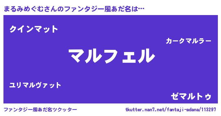 | ヘコむあだ名 | 『まるもー』『まるみめぐむ(震え声)』 |