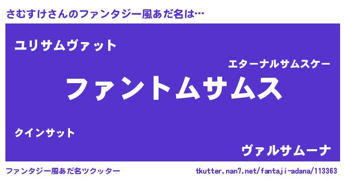 | 欧米人風あだ名 | 『アンジェラ・さむすけ』 |