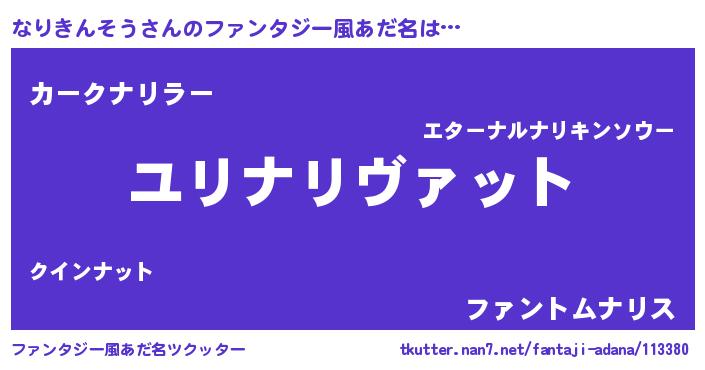 | 男性向けラノベタイトル風あだ名 | 『なりきんそうに滅ぼされるだけの簡単なお仕事です』 |