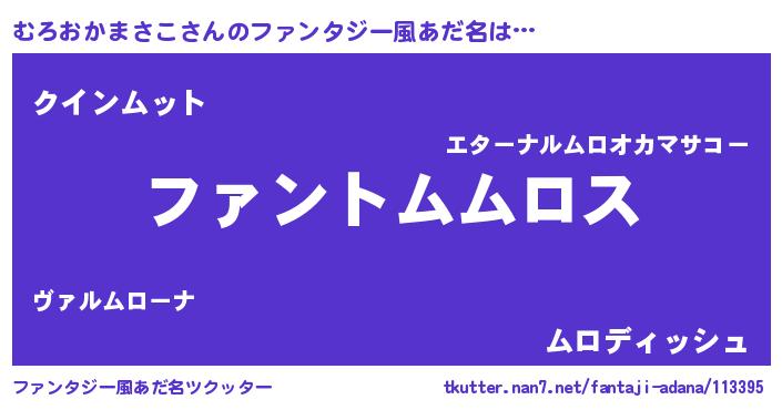 | 男性向けラノベタイトル風あだ名 | 『むろおかまさこの嫁は女の子じゃないと思った?』 |
