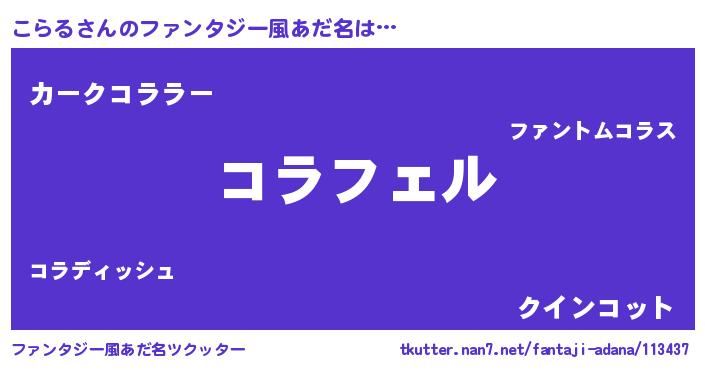 | 意味不明あだ名 | 『ペロリンこらる』『永久保存こらる』 |