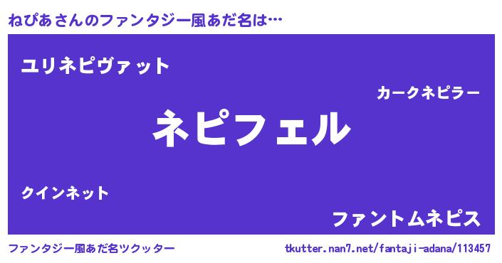 | ヒーロー風カッコイイあだ名 | 『スーパーネピア』『銀牙騎士ネピ』 |