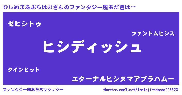 | 胡散臭い通販商品みたいなあだ名 | 『前代未聞の健康食品…その名も「ひしぬまあぶらはむ」』 |