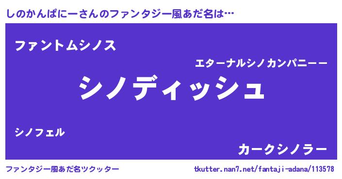 | 男性向けラノベタイトル風あだ名 | 『しのかんぱにーという概念が存在しない退屈な世界 』 |