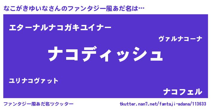 | ヘコむあだ名 | 『なこがきゆいな(爆)』『牛乳』 |