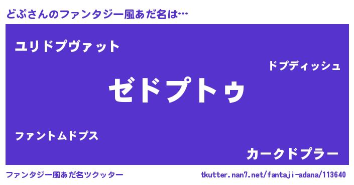 | 男性向けラノベタイトル風あだ名 | 『Re:どぷから始める異世界生活』 |