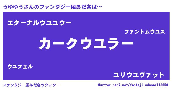| 欧米人風あだ名 | 『うゆゆう・ステッグマイヤー』 |