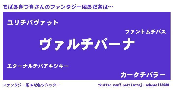 ちばあきつきさんのファンタジー風あだ名をツクッター!