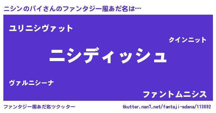 | 女子向けラノベタイトル風あだ名 | 『異世界でカフェニシンのパイを開店しました。』 |