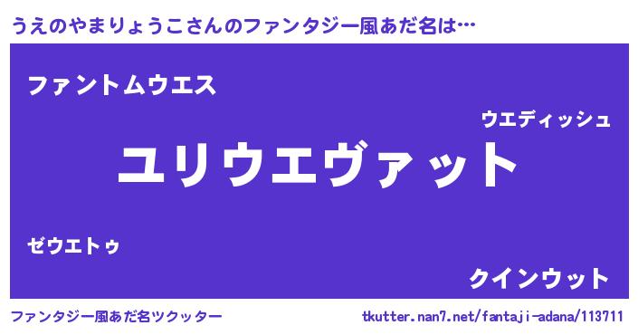 | ヘコむあだ名 | 『うえを』『うえのやまりょうこ(笑)』 |