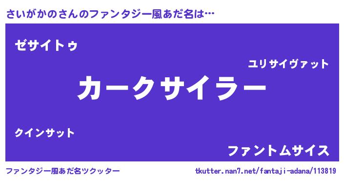 | 意味不明あだ名 | 『自称さいがかの』 |