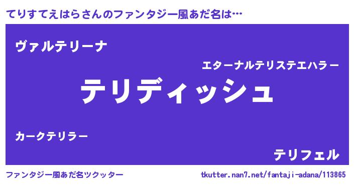 | 男性向けラノベタイトル風あだ名 | 『てりすてえはらという概念が存在しない退屈な世界 』 |