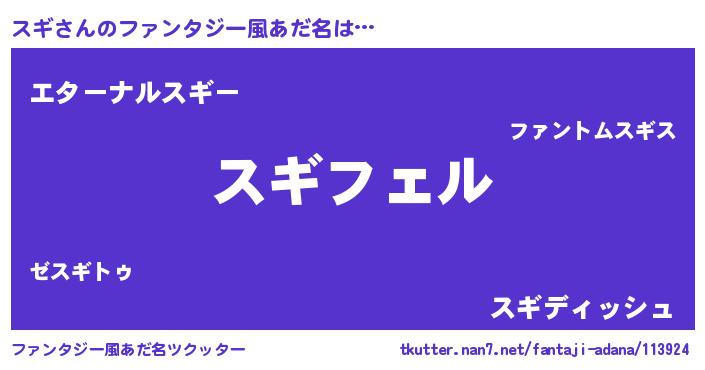 | 男性向けラノベタイトル風あだ名 | 『スギの憂鬱』 |