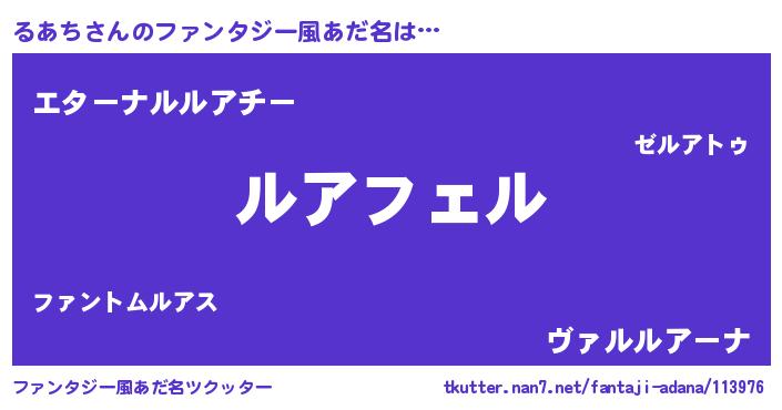 | ポケモン風あだ名 | 『ルアチュウ』『ルアチダネ』 |