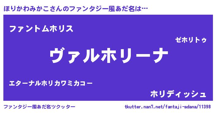 | 男性向けラノベタイトル風あだ名 | 『魔弾の王とほりかわみかこ』 |