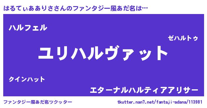 | 胡散臭い通販商品みたいなあだ名 | 『億万長者になれるブレスレット…その名も「はるてぃあありさ」』 |