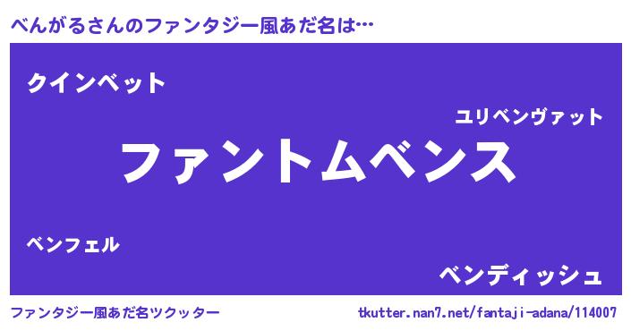 | 男性向けラノベタイトル風あだ名 | 『べんがるの嫁は女の子じゃないと思った?』 |