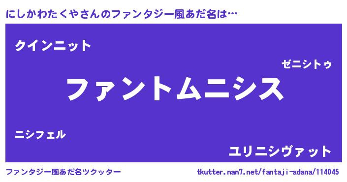 | ポケモン風あだ名 | 『ヒニシカワタクヤ』『ニックウザ』 |