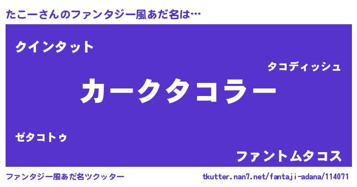 | 男性向けラノベタイトル風あだ名 | 『緋弾のタコー』『魔法科高校のたこー』 |