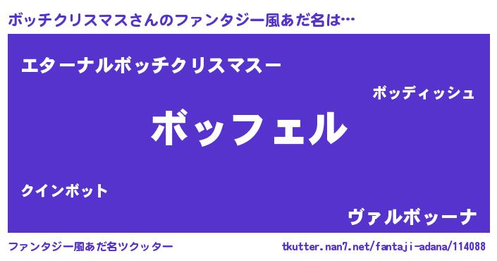 | 胡散臭い通販商品みたいなあだ名 | 『必ず成功する水晶球…その名も「ボッチクリスマス」』 |
