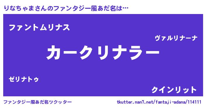 | 男性向けラノベタイトル風あだ名 | 『緋弾のリナチャマ』 |