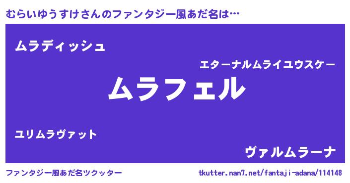 | 男性向けラノベタイトル風あだ名 | 『むらいゆうすけの憂鬱』 |