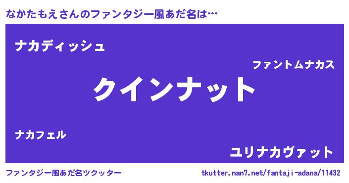 | ヘコむあだ名 | 『なかたもえ(震え声)』『なかっ子』 |
