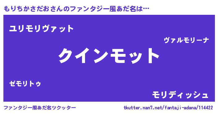 | ヘコむあだ名 | 『もりちかさだお(遠い目)』『もりにゅー』 |
