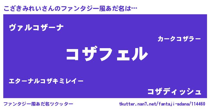 | 男性向けラノベタイトル風あだ名 | 『コザキミレイアートオンライン』 |
